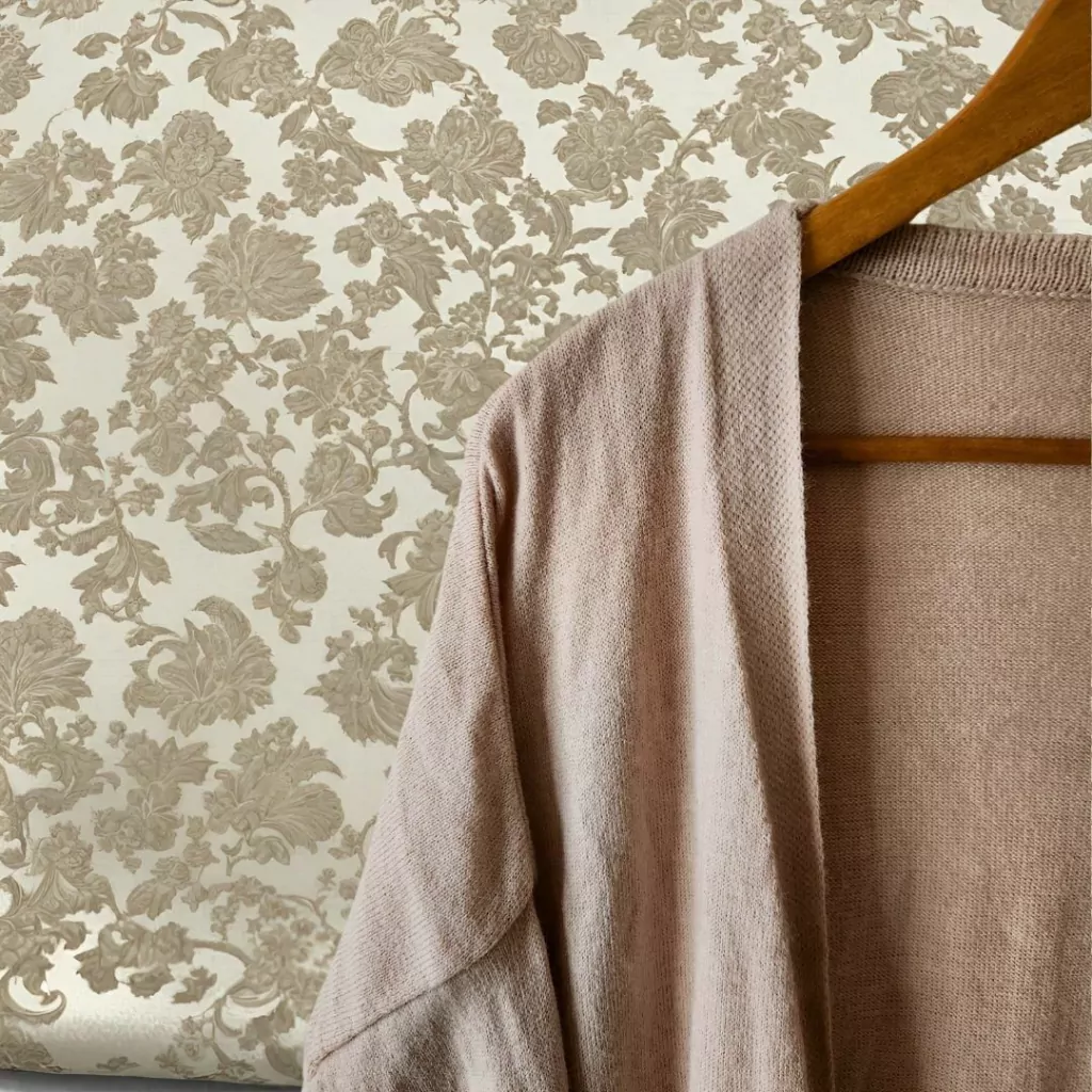 Cardigan sin botones extra largo. Detalle de tejido tipo morley en mangas y en el final del saco.